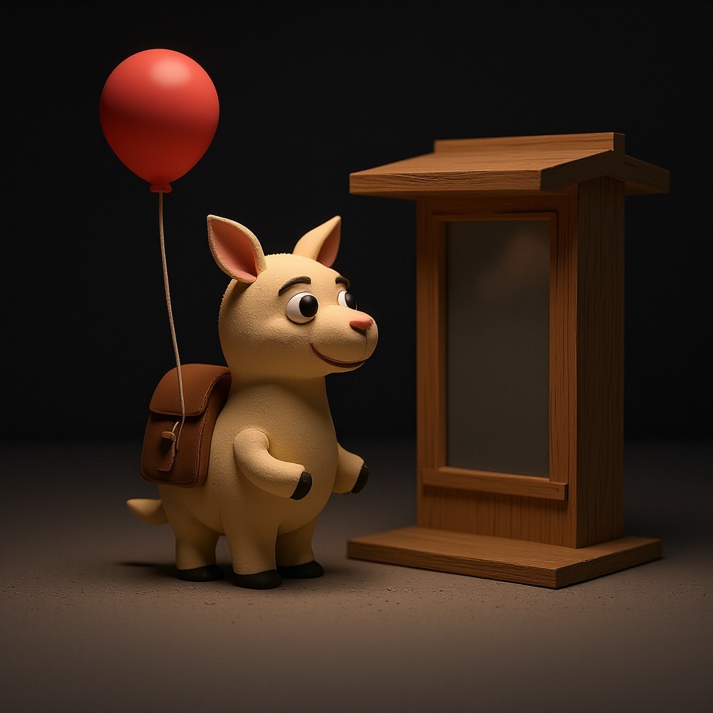 Prompt: A tiny fox with a backpack waits at a toy-sized bus stop, holding a bright red balloon. The scene is crafted in clay, with chunky textures and soft, rounded shapes that feel handmade. Rendered in claymation stop-motion style with playful detail and warm, childlike charm.… pic.twitter.com/GGQpfkTqCx